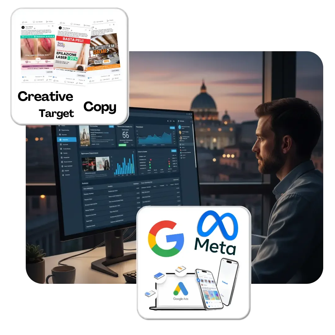 Trasformiamo i tuoi investimenti in campagne pubblicitarie online (Meta, Google, TikTok) in nuovi Contatti Qualificati.
